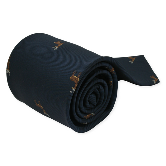 Navy Blue Stag Design Microfiber Neck Tie