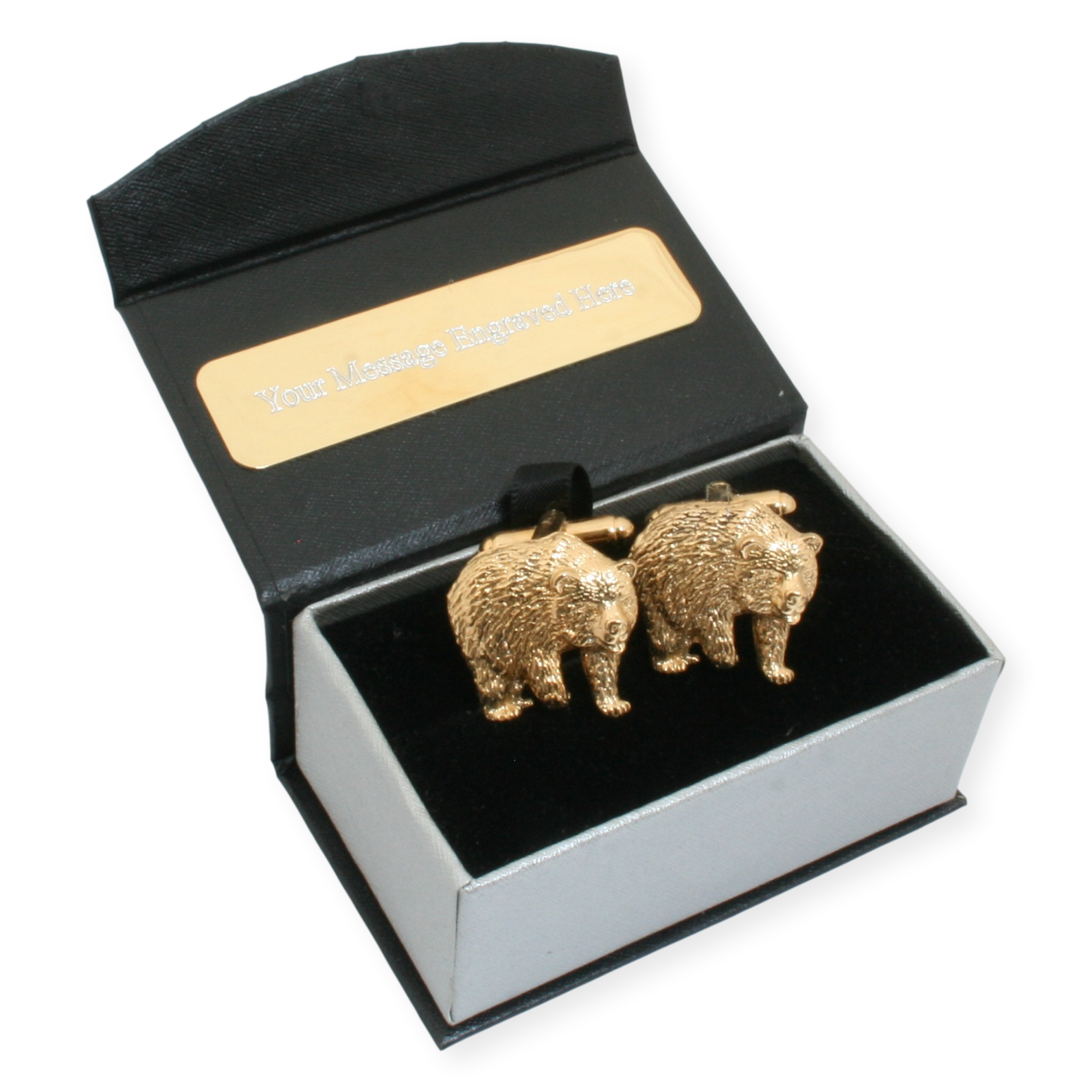 Bear Gold Plated Pair Of Cufflinks & Engraving Option