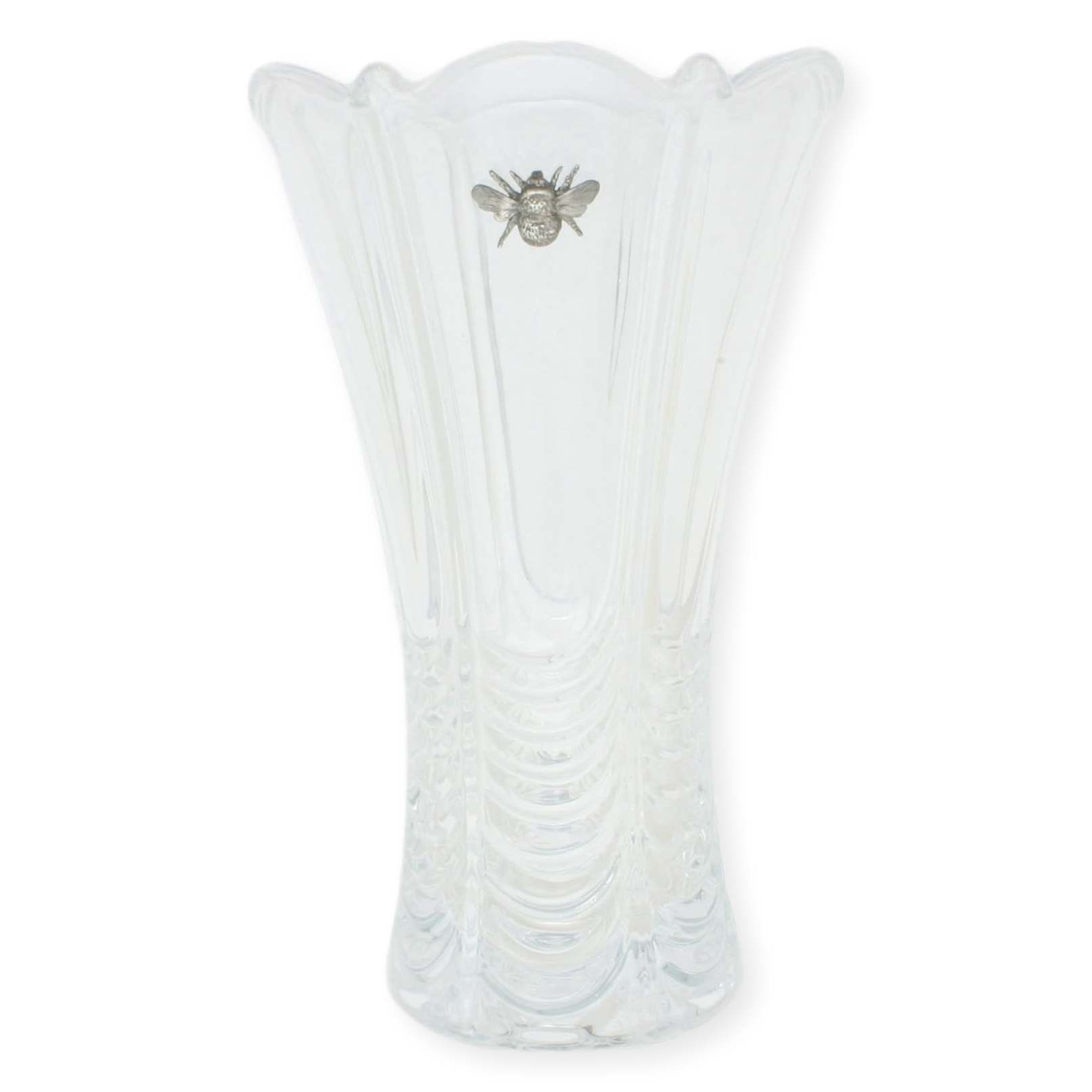 Crystal Glass Vase, ideal for gifting to anyone. Its six-panel fluted design, with a cut pattern at the base. A distinctive wildlife motif on the front panel adds a unique touch.