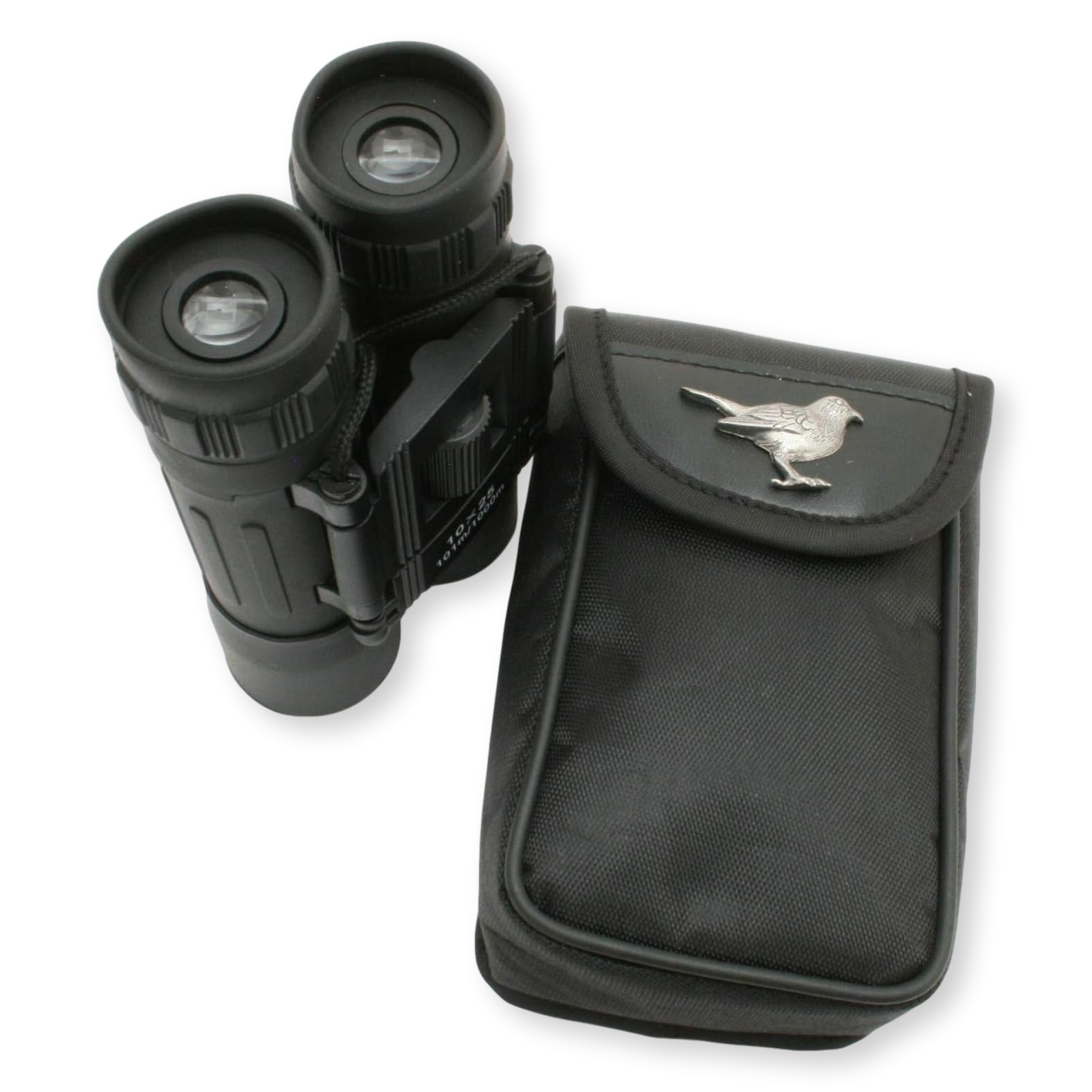 These portable folding binoculars offer 8x zoom and 21mm objective lenses, allowing you to observe objects in crisp detail up to 100 meters away. Designed with a non-slip central focus wheel and an adjustable diopter for the right eye, they are easy to adjust, even for younger users. The set includes one pair of binoculars, a cleaning cloth, a neck strap, and a storage pouch. When folded, the binoculars measure 110mm x 90mm x 30mm, and when extended, they measure 90mm x 60mm x 30mm. The storage pouch is enhanced with a hand-cast pewter or enamel emblem for a personalized touch. Technical Details: MAGNIFICATION - 8X / EYEPIECE DIAMETER - 21mm / VIEWING RANGE - 131m (1000m).