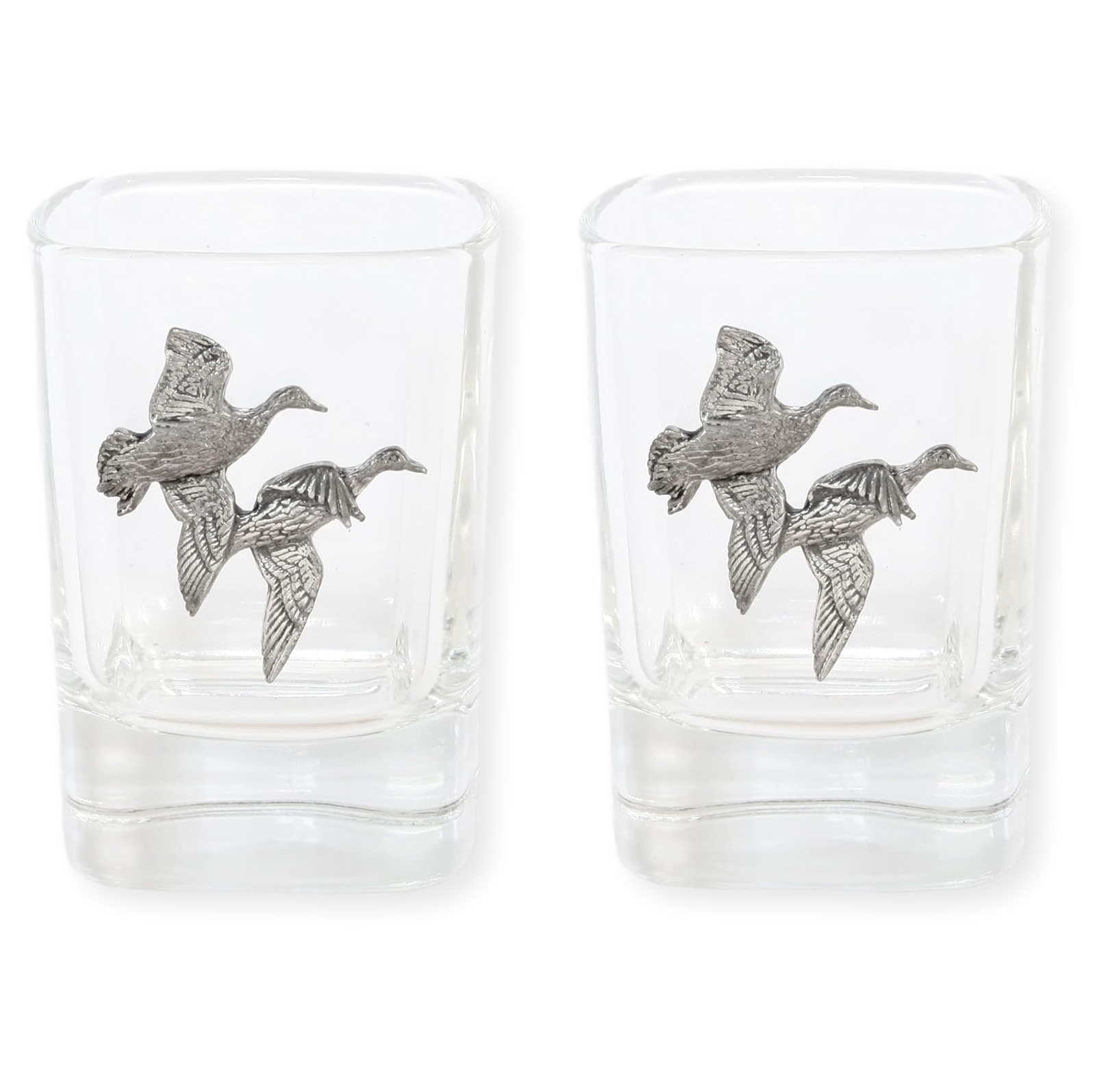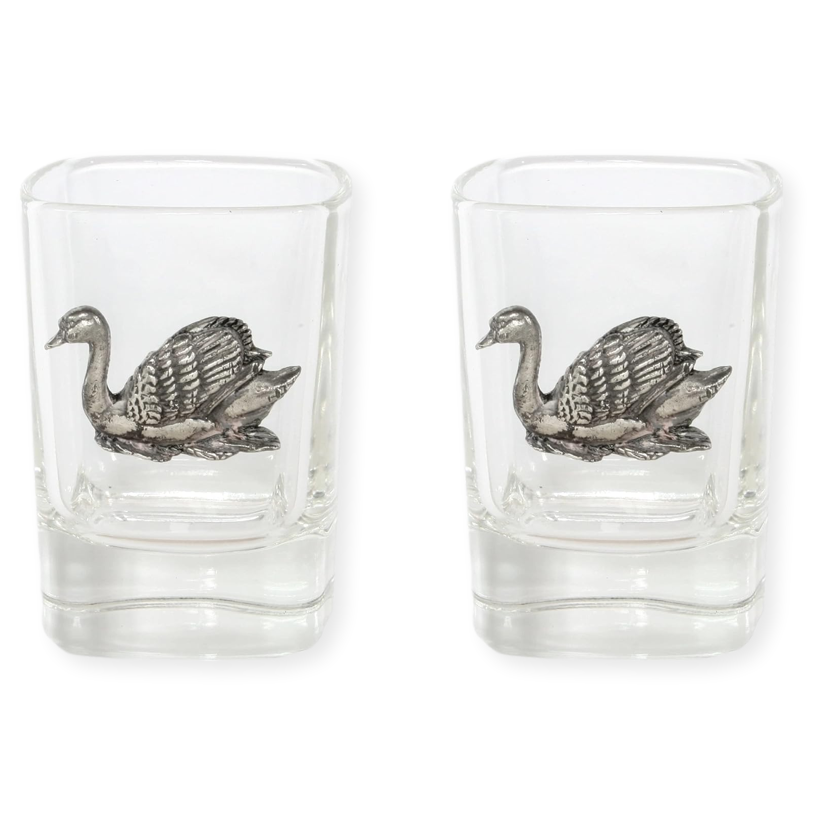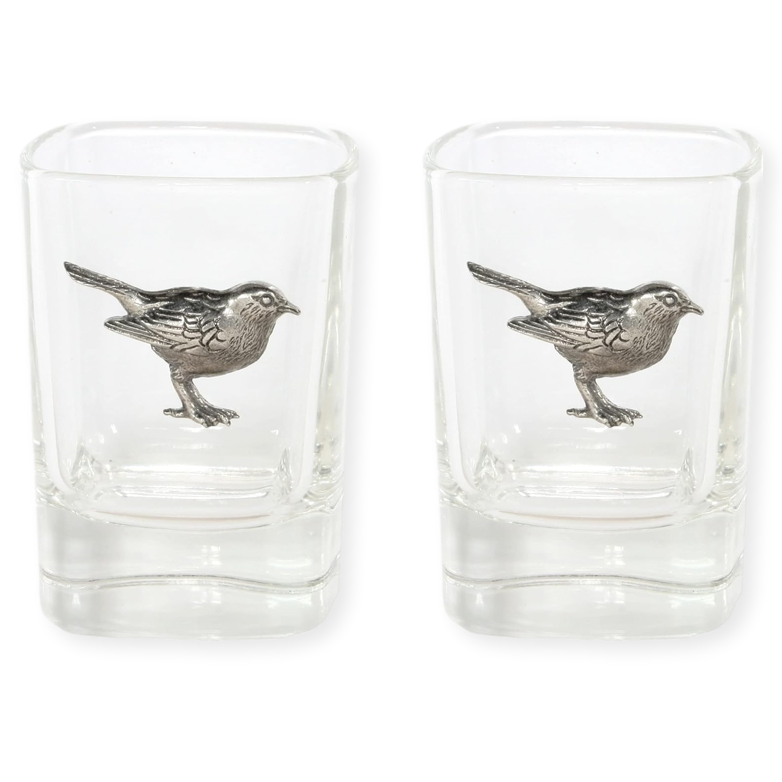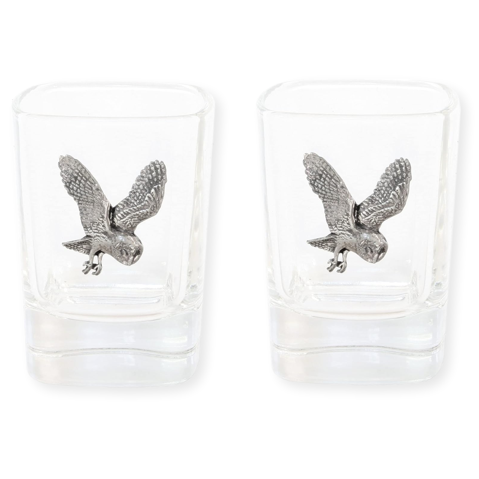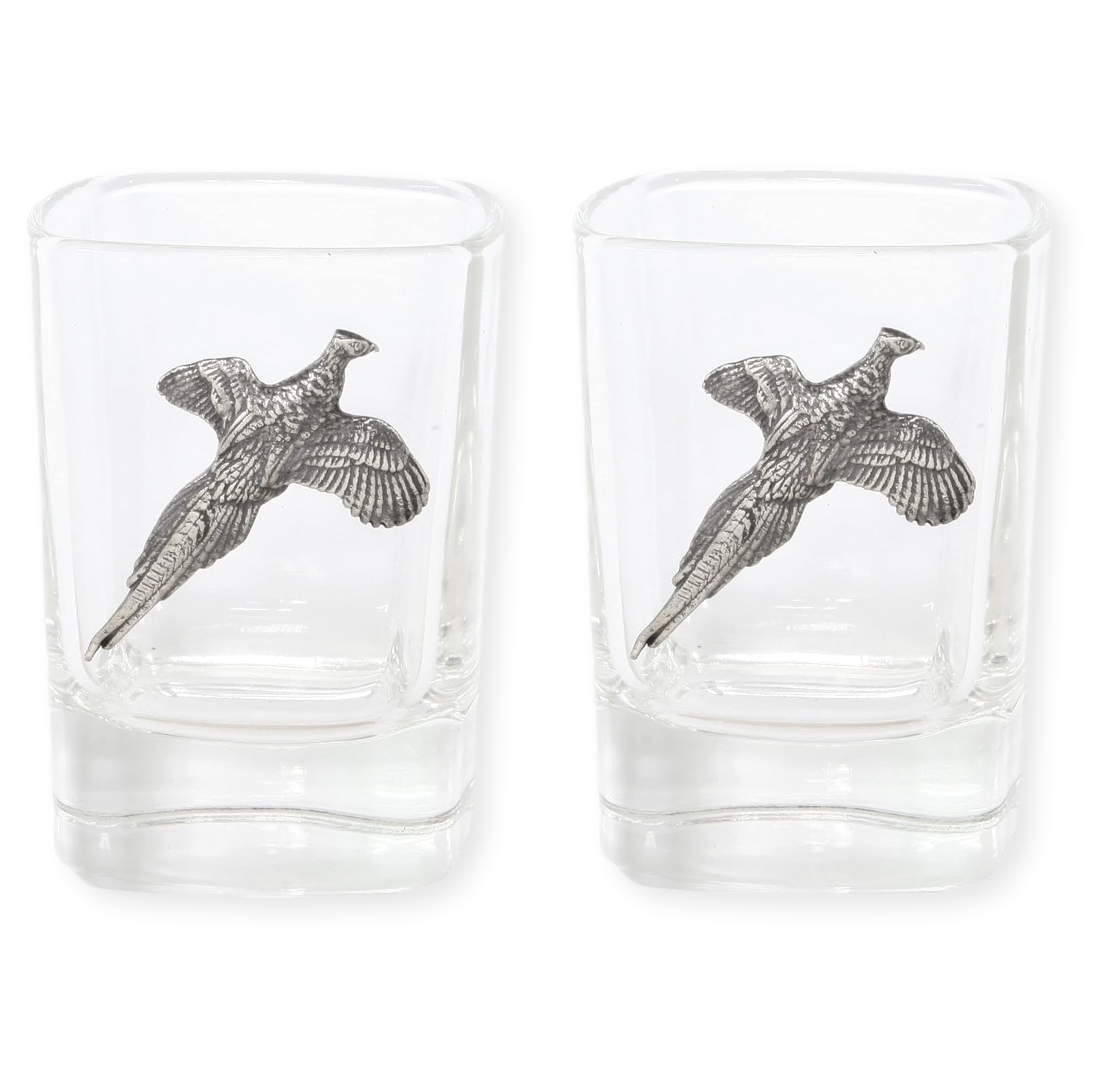 This set of birds themed crystal shot glasses makes a great gift. Each glass is expertly crafted to hold either a single 25ml shot or a double 50ml shot (1.6 fl oz). Standing 60mm tall and with a 45mm square top, these glasses showcase refined elegance. On the front of the shot glass is an Enlgish Pewter Motif adding a unique look.