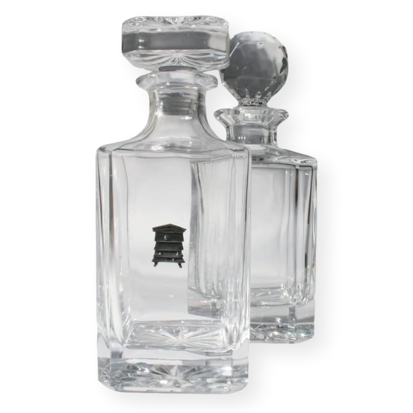 An ideal gift for whiskey drinking enthusiasts, this decanter boasts a square top or classic golf ball-style stopper and a chiseled design along the sides. A locally hand-cast pewter motif adorns the front. Perfect as a prize or to complement your spirit collection, it comes in a stylish blue skillet box. With a 750ml capacity (sufficient for an entire bottle of whiskey), it measures 230mm x 100mm x 100mm and weighs 2kg (4.4lbs).