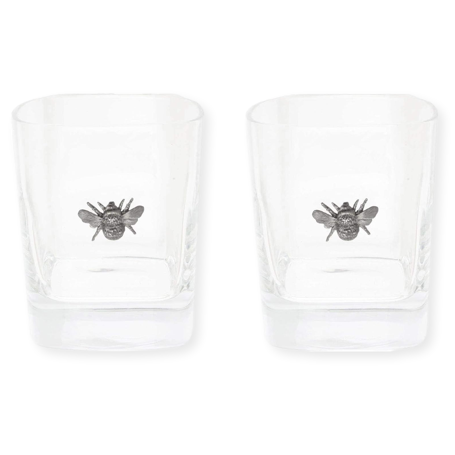 These butterflies & bee designed tumblers are sold in pairs and showcase a sophisticated, subtly square design known as 'Strauss'. Crafted from lead-free glass, each tumbler is adorned with a charming pewter emblem, locally made in Worcestershire, UK. Presented in a blue skillet box, they make an excellent gift or award choice. Each tumbler holds 24cl/8oz of liquid, stands 8cm tall, and features a square top with a 7mm width.