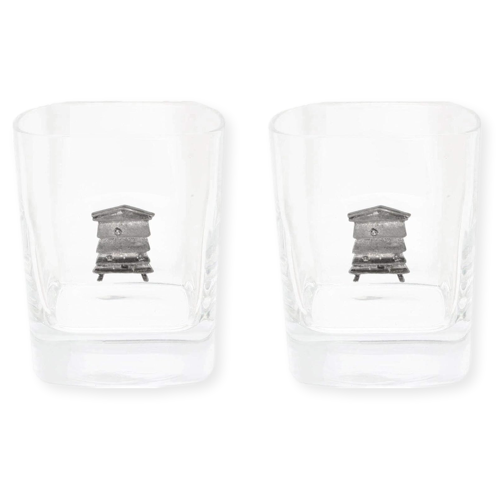 These butterflies & bee designed tumblers are sold in pairs and showcase a sophisticated, subtly square design known as 'Strauss'. Crafted from lead-free glass, each tumbler is adorned with a charming pewter emblem, locally made in Worcestershire, UK. Presented in a blue skillet box, they make an excellent gift or award choice. Each tumbler holds 24cl/8oz of liquid, stands 8cm tall, and features a square top with a 7mm width.