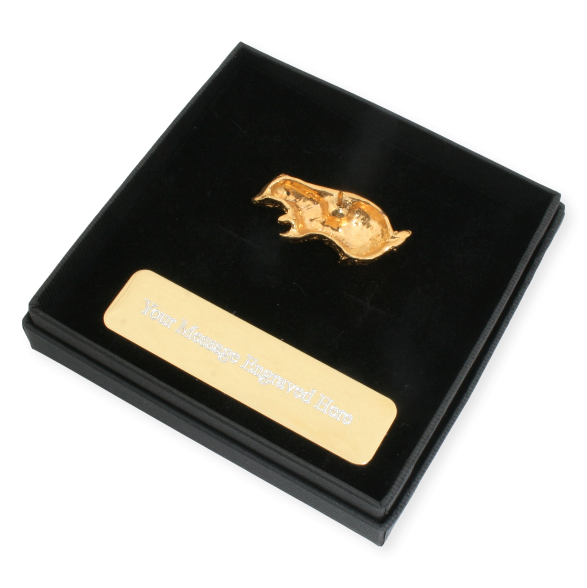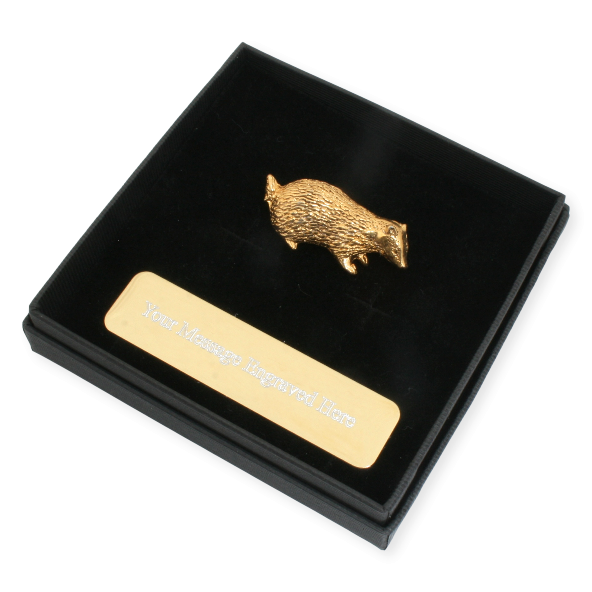 Enhance your collection with our stunning Gold badger Pin Badge, meticulously crafted with 22ct gold plating for a touch of elegance. This sophisticated badge can be customized with optional engraving on the gold plaque.