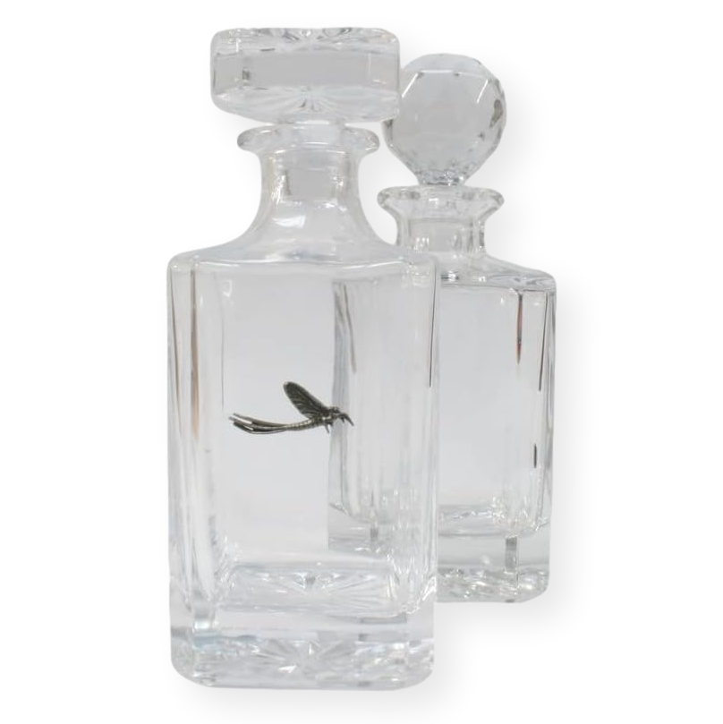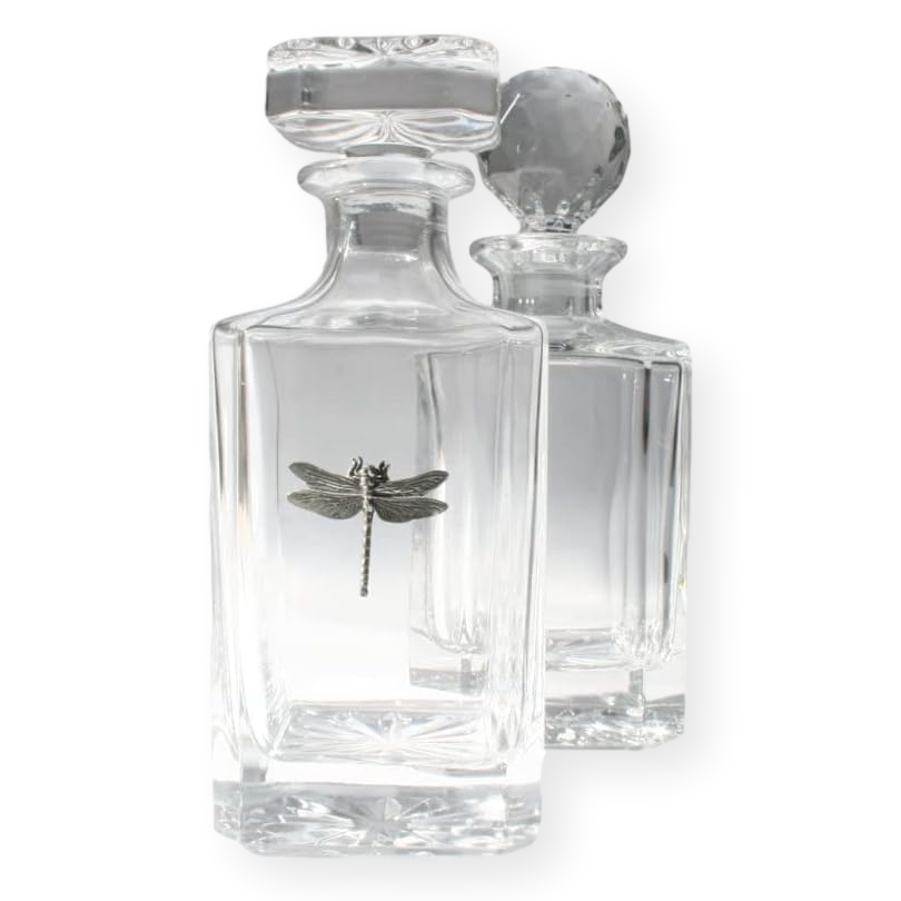 An ideal gift for whiskey drinking enthusiasts, this decanter boasts a square top or classic golf ball-style stopper and a chiseled design along the sides. A locally hand-cast pewter insect motif adorns the front. Perfect as a prize or to complement your spirit collection, it comes in a stylish blue skillet box. With a 750ml capacity (sufficient for an entire bottle of whiskey), it measures 230mm x 100mm x 100mm and weighs 2kg (4.4lbs).
