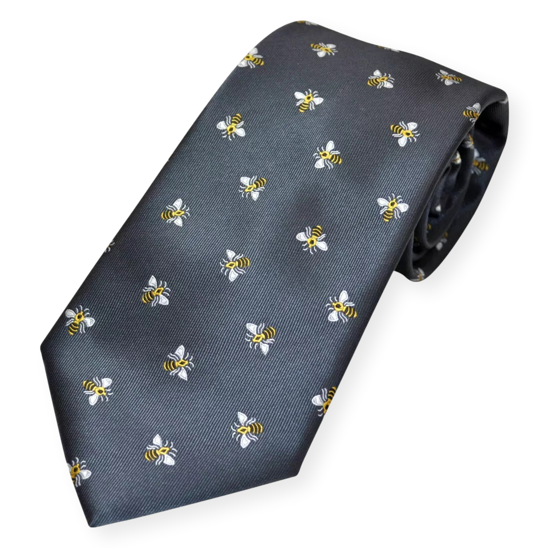 This premium blue microfiber tie showcases a detailed repeating bee design on a rich navy blue background, offering a classic yet stylish look. Measuring approximately 9 cm at its widest point and 140 cm in length, this tie is designed for both comfort and sophistication. Whether you're attending a shoot day or simply looking to enhance your country-inspired wardrobe, this tie is the perfect accessory to complement your shooting attire and make a refined statement.