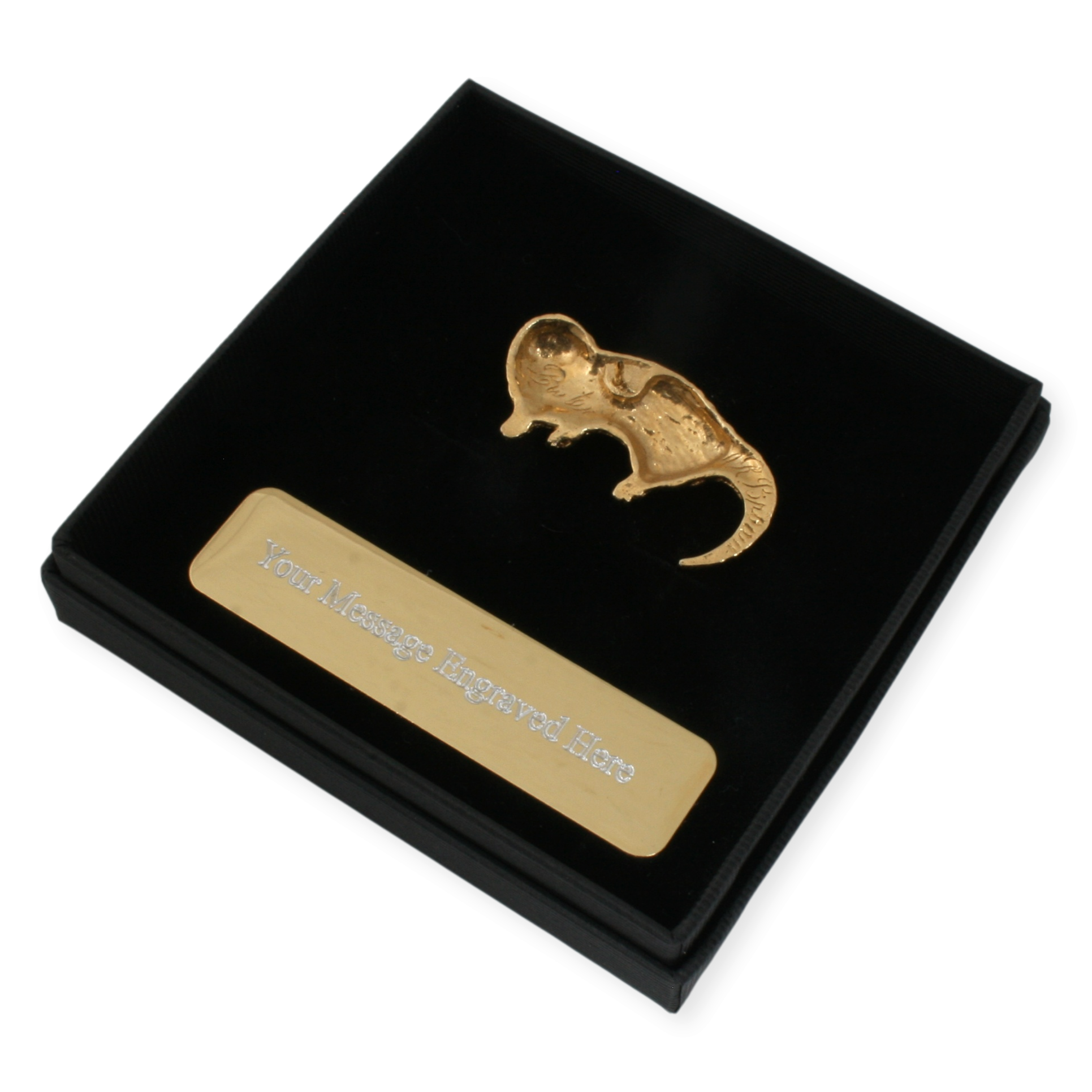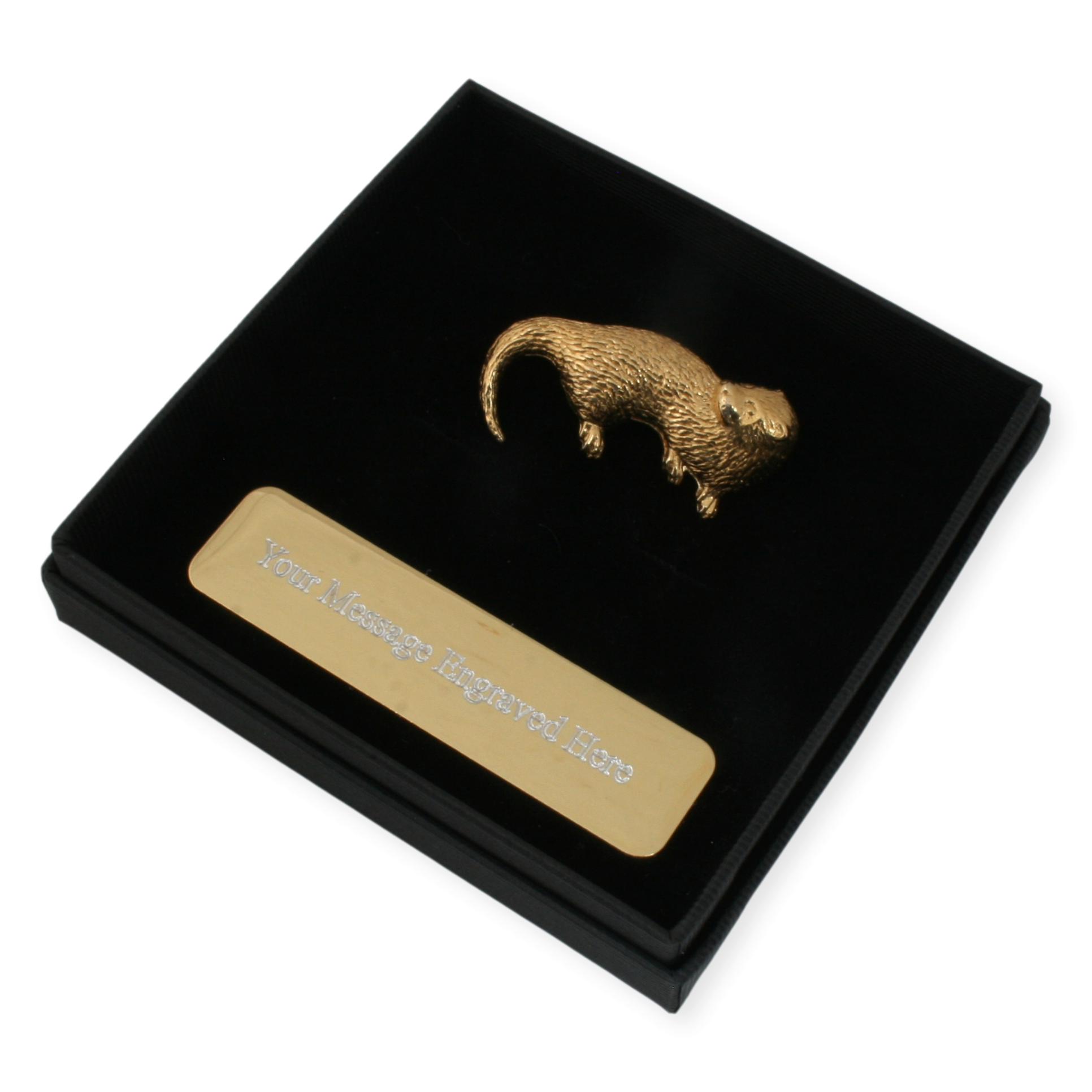 Enhance your collection with our stunning gold Otter Pin Badge, meticulously crafted with 22ct gold plating for a touch of elegance. This sophisticated badge can be customized with optional engraving on the gold plaque.
