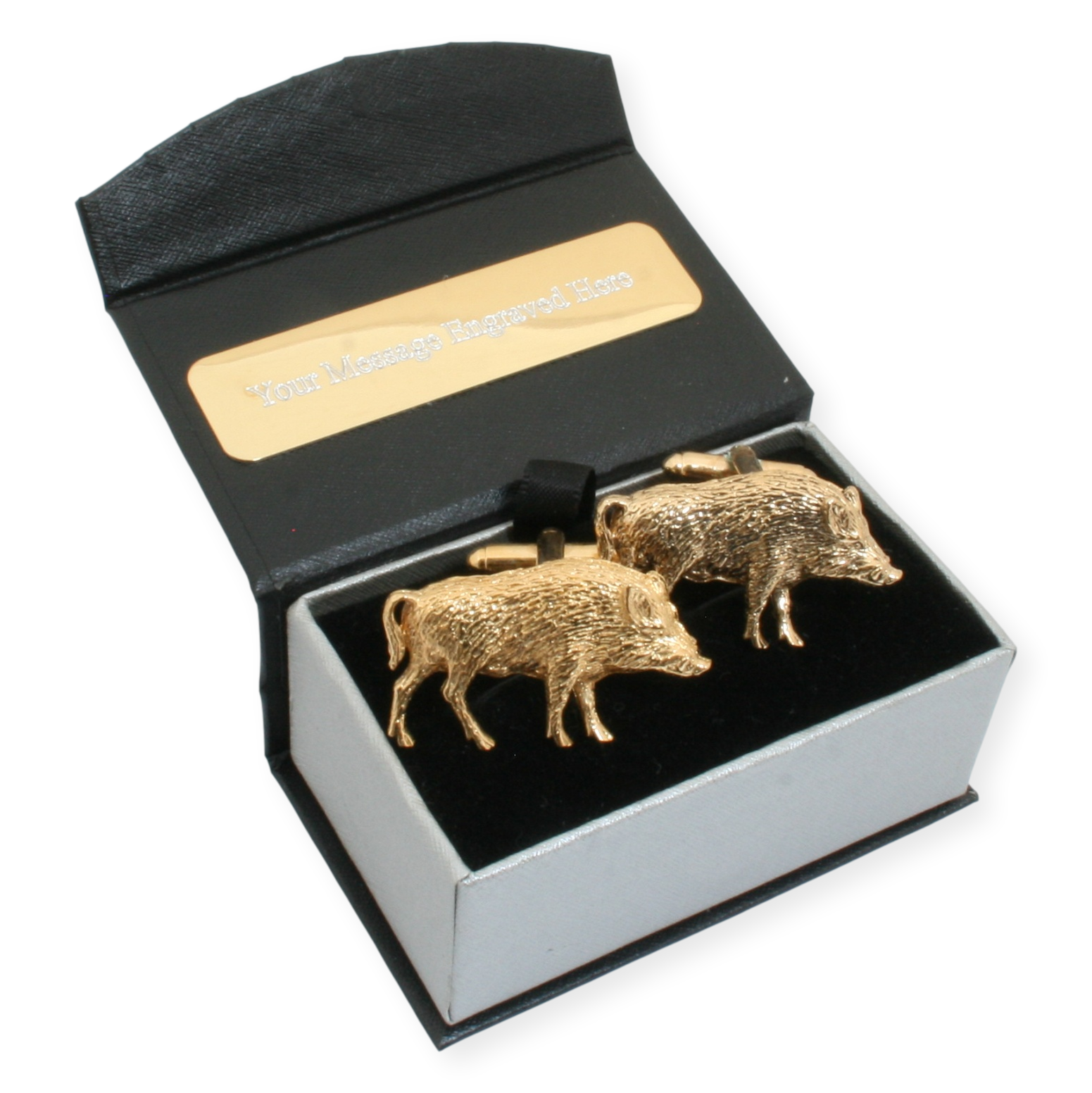Pair Of Boar Gold Plated Cufflinks With Engraving Option