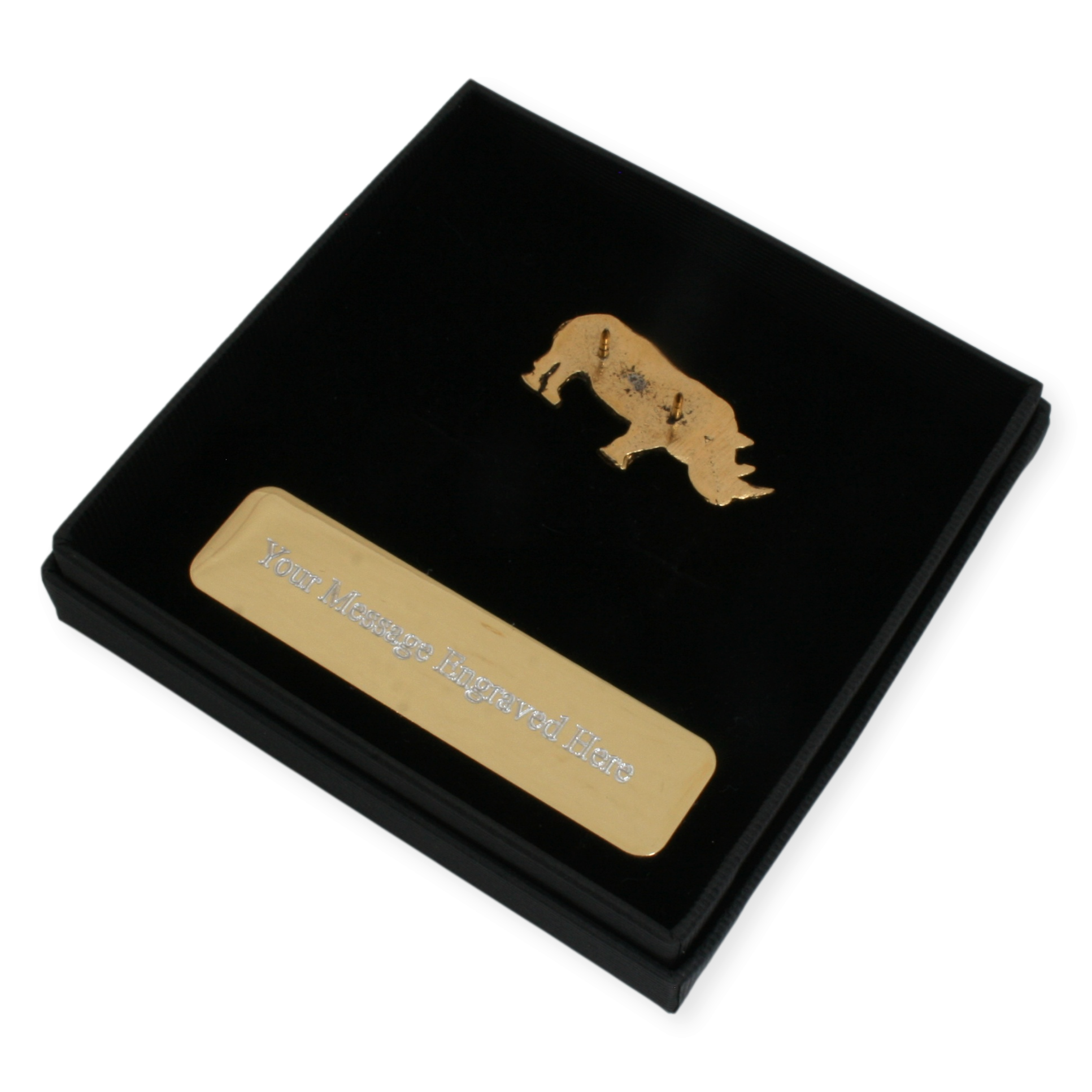 Rhino Gold Plated Lapel Pin Badge With Engraving Option