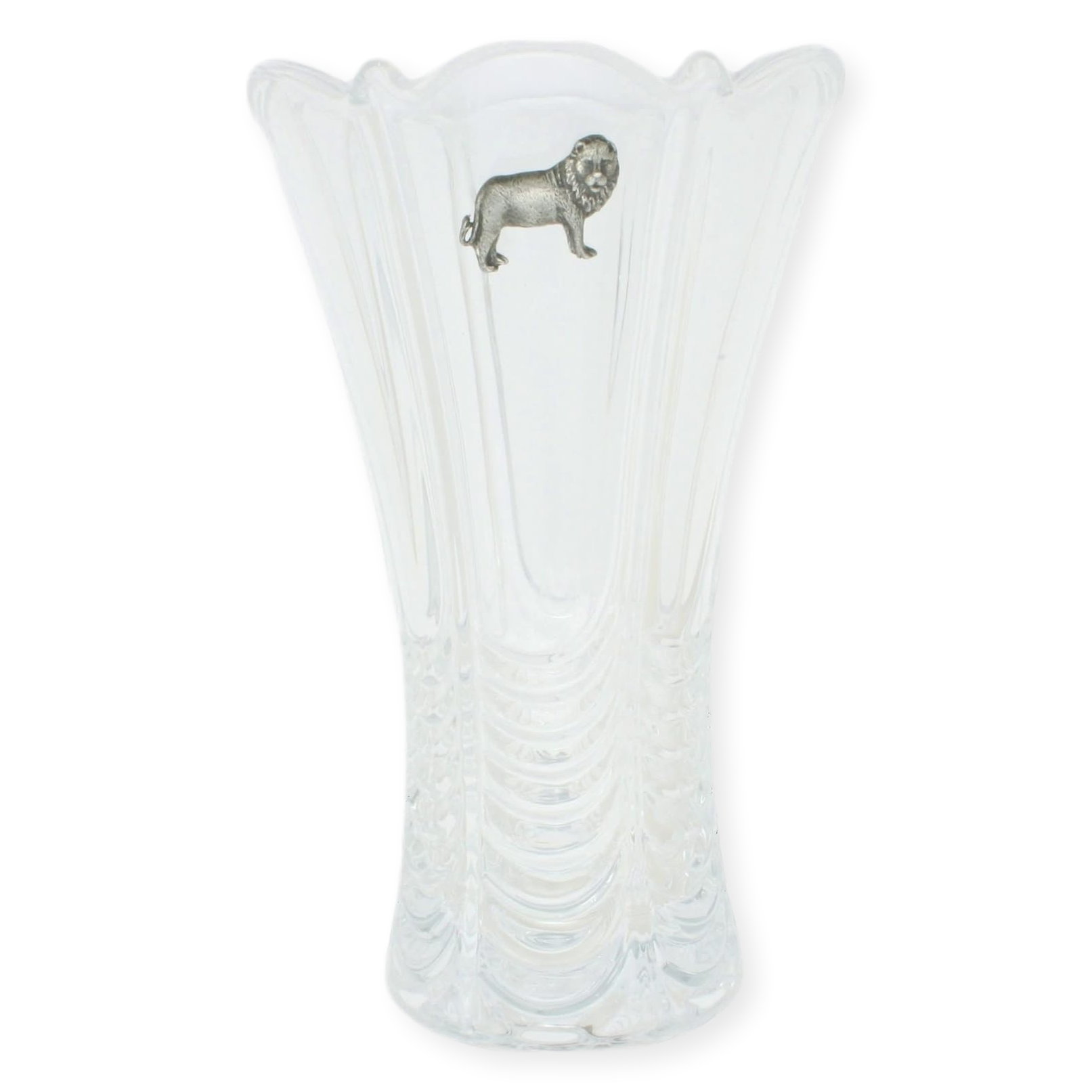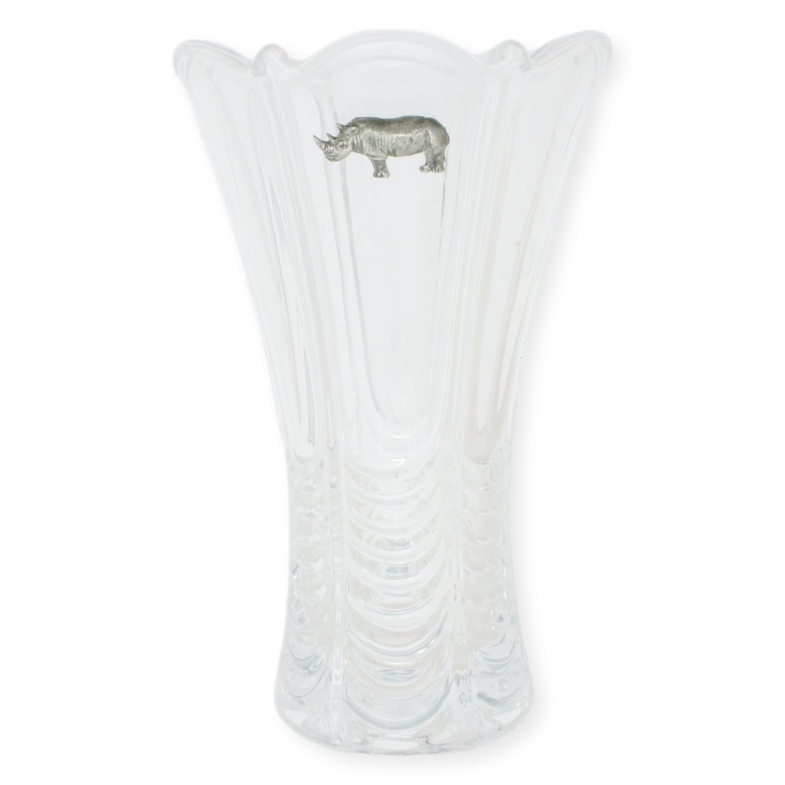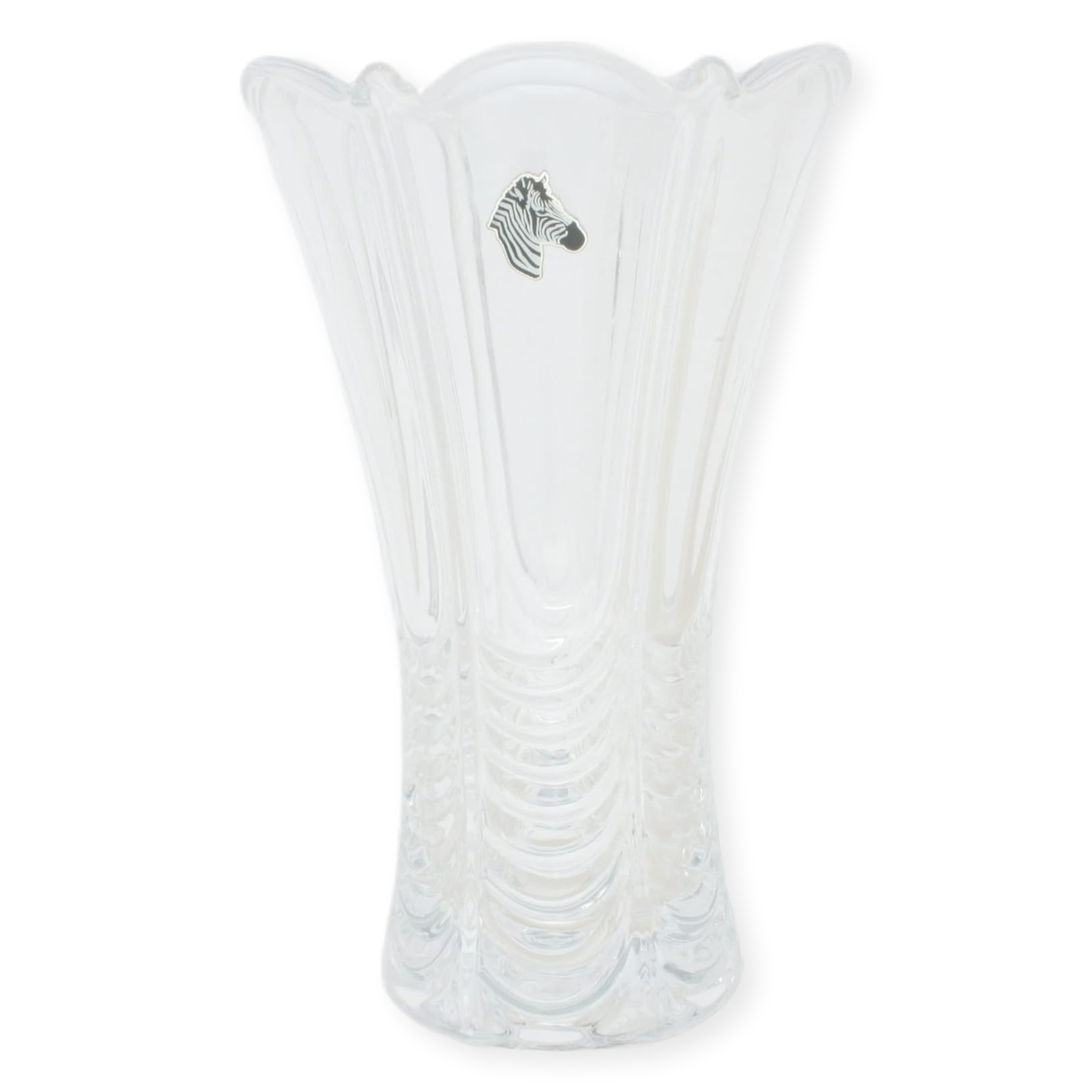 Crystal Glass Vase, ideal for gifting to anyone. Its six-panel fluted design, with a cut pattern at the base. A safari animal motif on the front panel adds a unique touch.