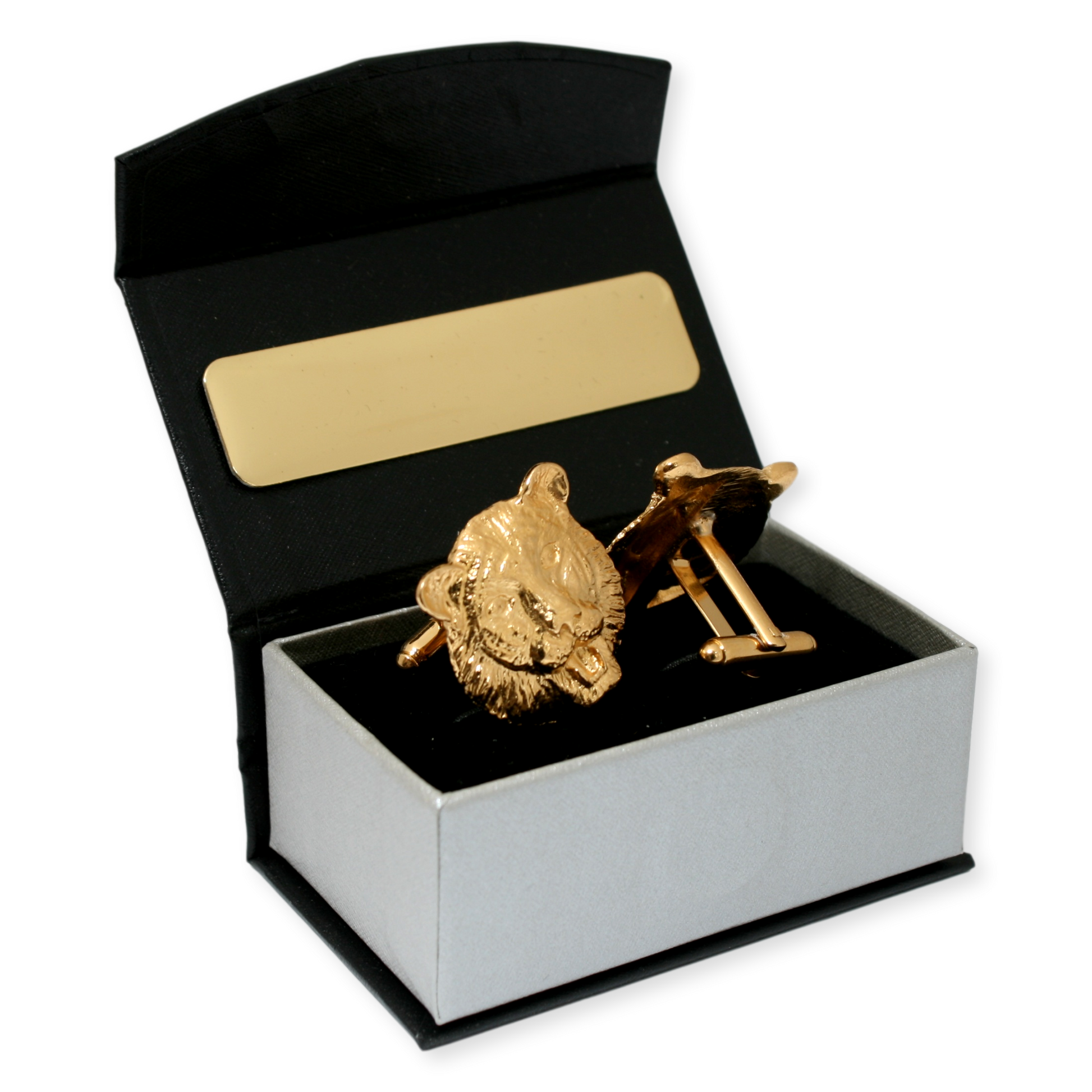 Tiger Face Gold Plated Cufflinks With Engraving Option Gift Boxed