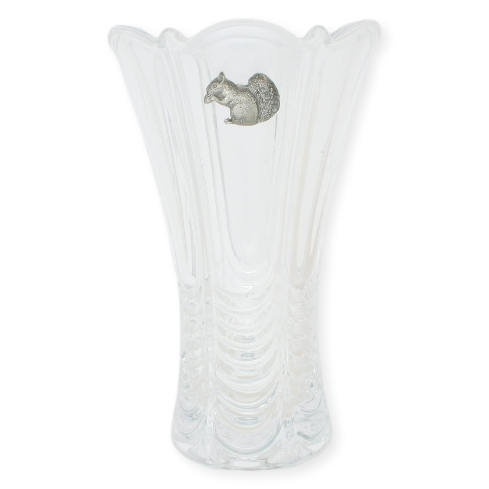 Crystal Glass Vase, ideal for gifting to anyone. Its six-panel fluted design, with a cut pattern at the base. A woodland animals motif on the front panel adds a unique touch.